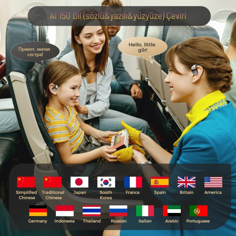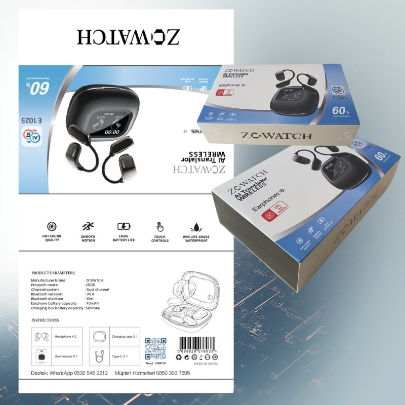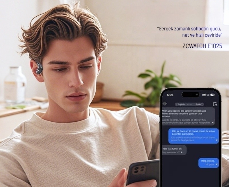 ZCWATCH E1025, yapay zekâ destekli 150 dilde sözlü ve yazılı çeviri özelliğiyle yalnızca bir kulaklık değil; gerçek zamanlı ve yüz yüze iletişim kurmanızı sağlayan akıllı bir dijital asistandır. Seyahatlerde, sporda, iş görüşmelerinde, toplantılarda ve sosyal ortamlarda dil bariyerini tamamen ortadan kaldırır.